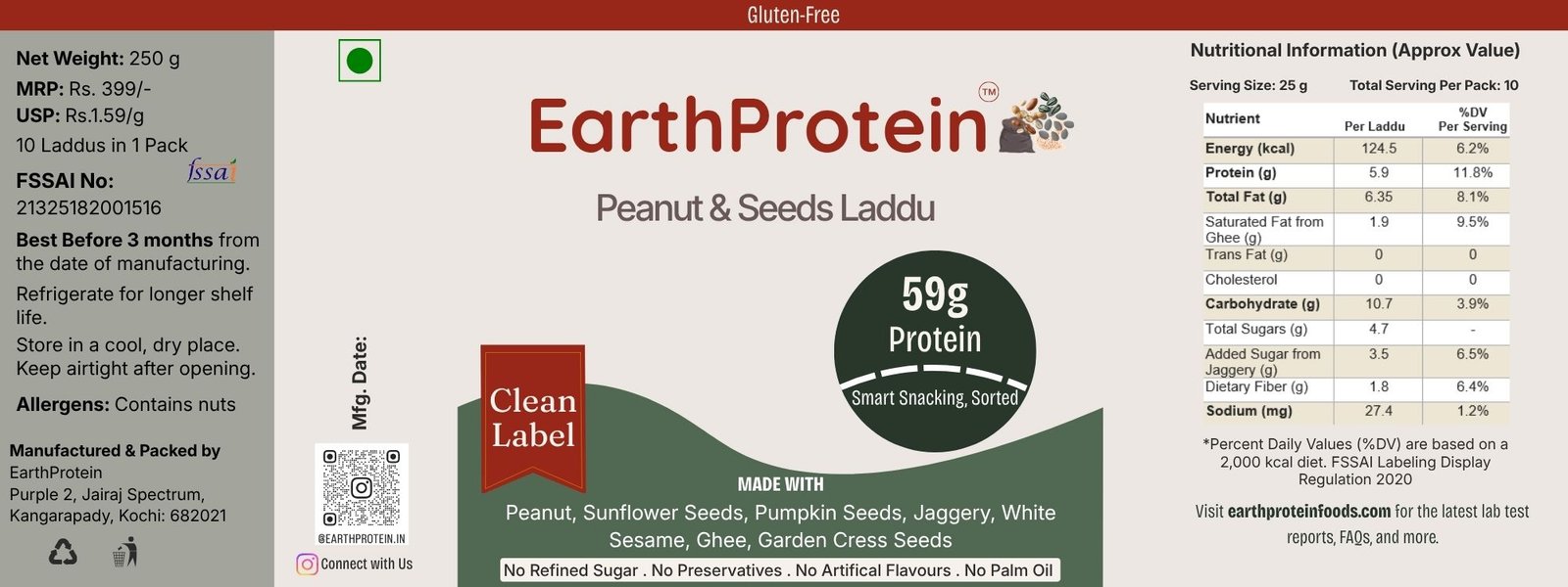 EarthProtein Peanut & Seeds Laddu is your smart snacking solution with close to 6 g of protein per laddu!